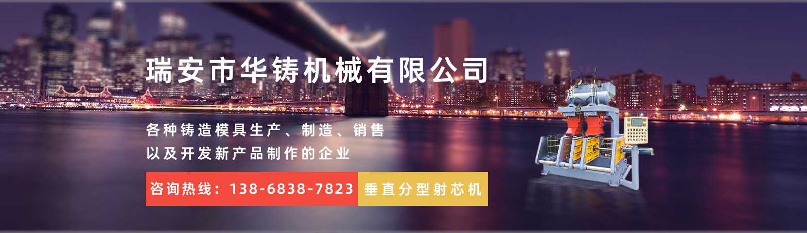 瑞安市華鑄機(jī)械有限公司,創(chuàng)建于2014年,位于經(jīng)濟(jì)發(fā)達(dá)的機(jī)械制造基地——溫州。本公司是一家致力于全自動重力澆鑄機(jī)、射芯機(jī)殼芯機(jī)、覆膜砂設(shè)備、各種鑄造模具生產(chǎn)、制造、銷售以及開發(fā)新產(chǎn)品制作的企業(yè)。